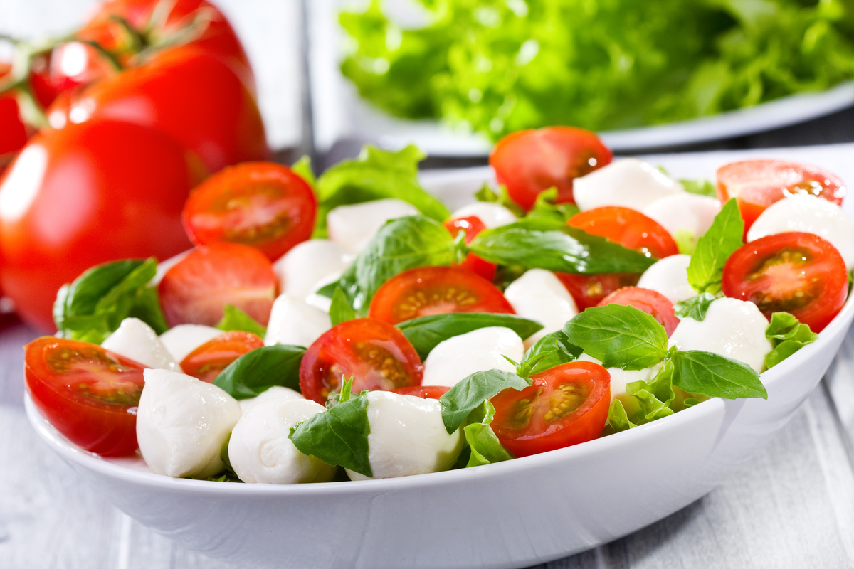 Ingredients 2 ripe tomatoes 3 ½ ounces mozzarella cheese 2 avocados Fresh basil leaves, torn into pieces 20 black olives For the dressing: 1 Tbsp. olive oil 1 ½ ...