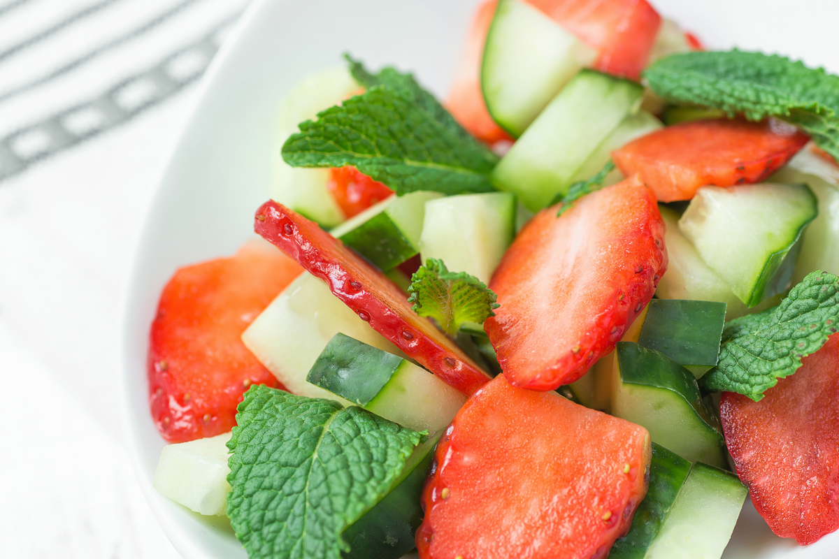 Ingredients 8 oz. strawberries, hulled and halved 1 cucumber, seeds removed and sliced 1 small red onion, thinly sliced ½ cup fresh basil, thinly sliced ¼ cup fresh mint, thinly ...